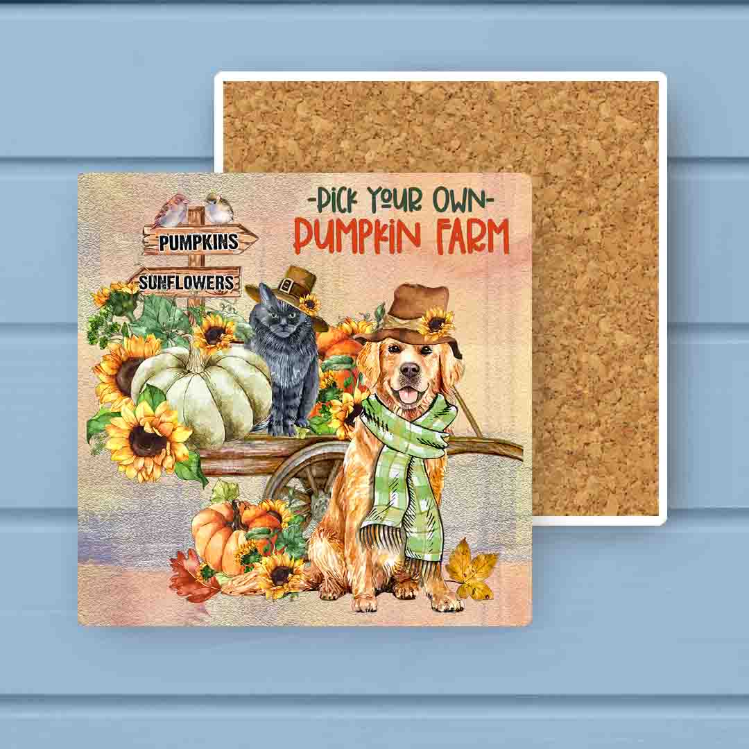 Autumn Acres Dog Cat Pumpkin Farm Rustic Stone Coaster