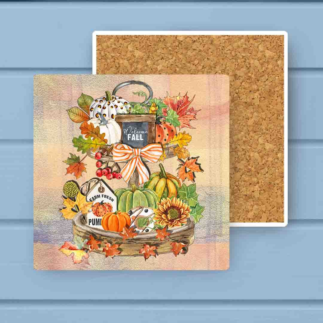 Welcome Fall Tiered Pumpkin Farmhouse Stone Coaster
