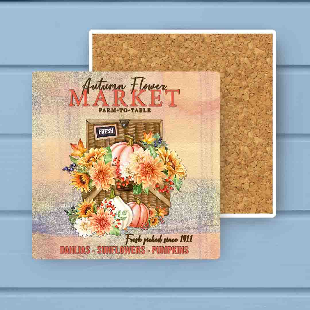 Autumn Flower Market Farmhouse Absorbant Stone Coaster