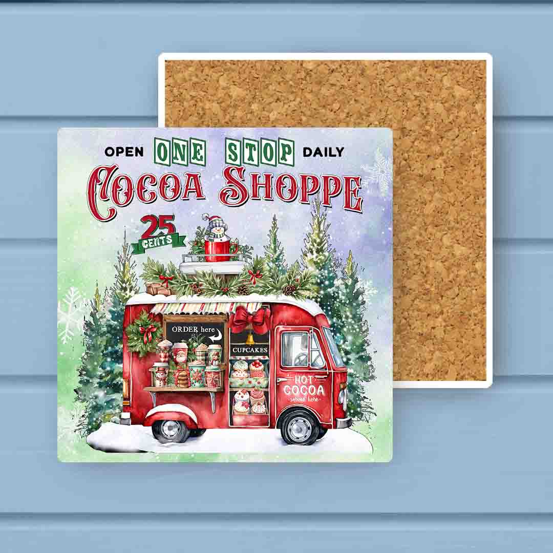 Mobile Hot Cocoa Truck Winter Christmas Stone Coaster