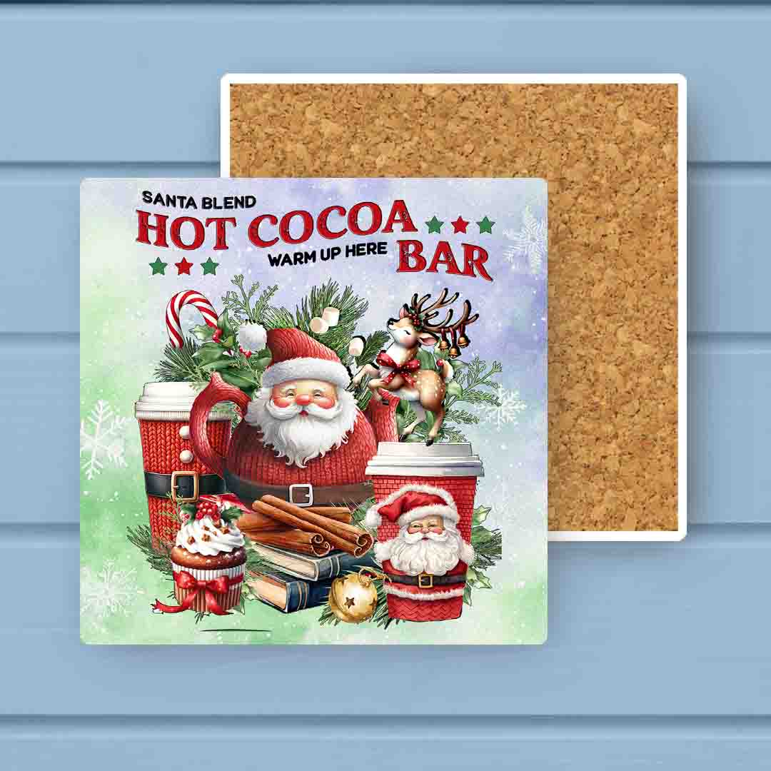 Santa's Reindeer Hot Cocoa Bar Christmas Stone Coaster