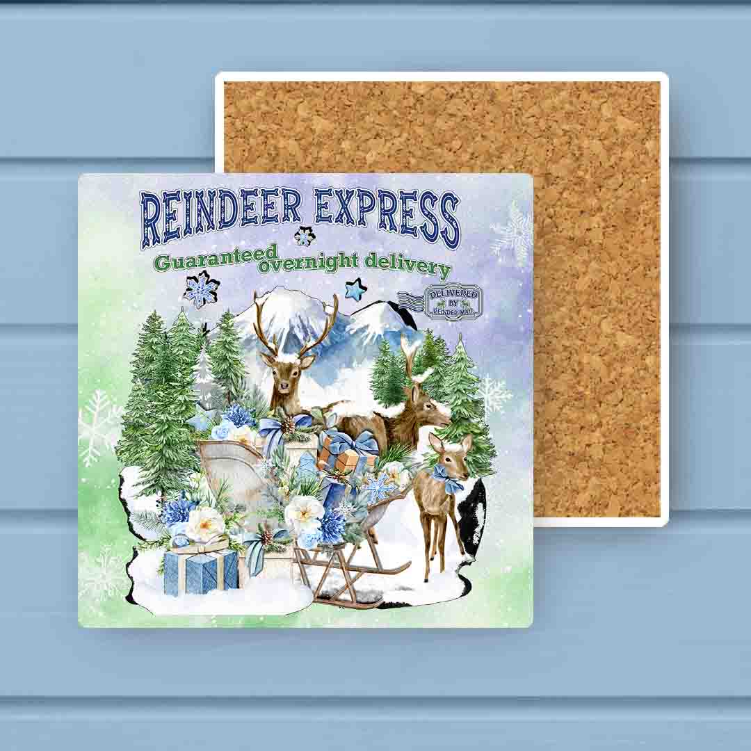 Reindeer Express Vintage Winter Christmas Stone Coaster