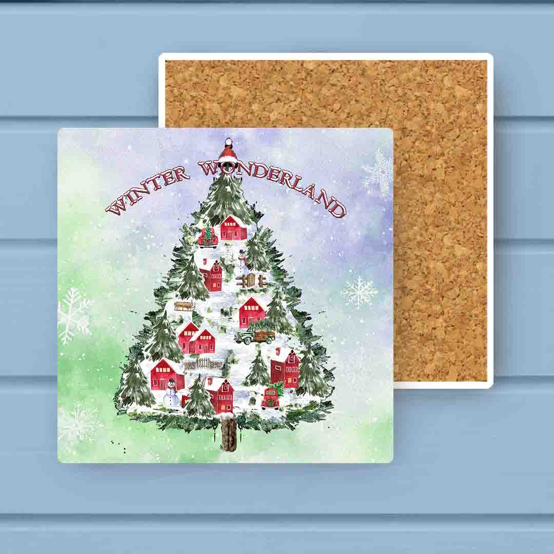 Winter Wonderland Christmas Tree Absorbant Stone Coaster