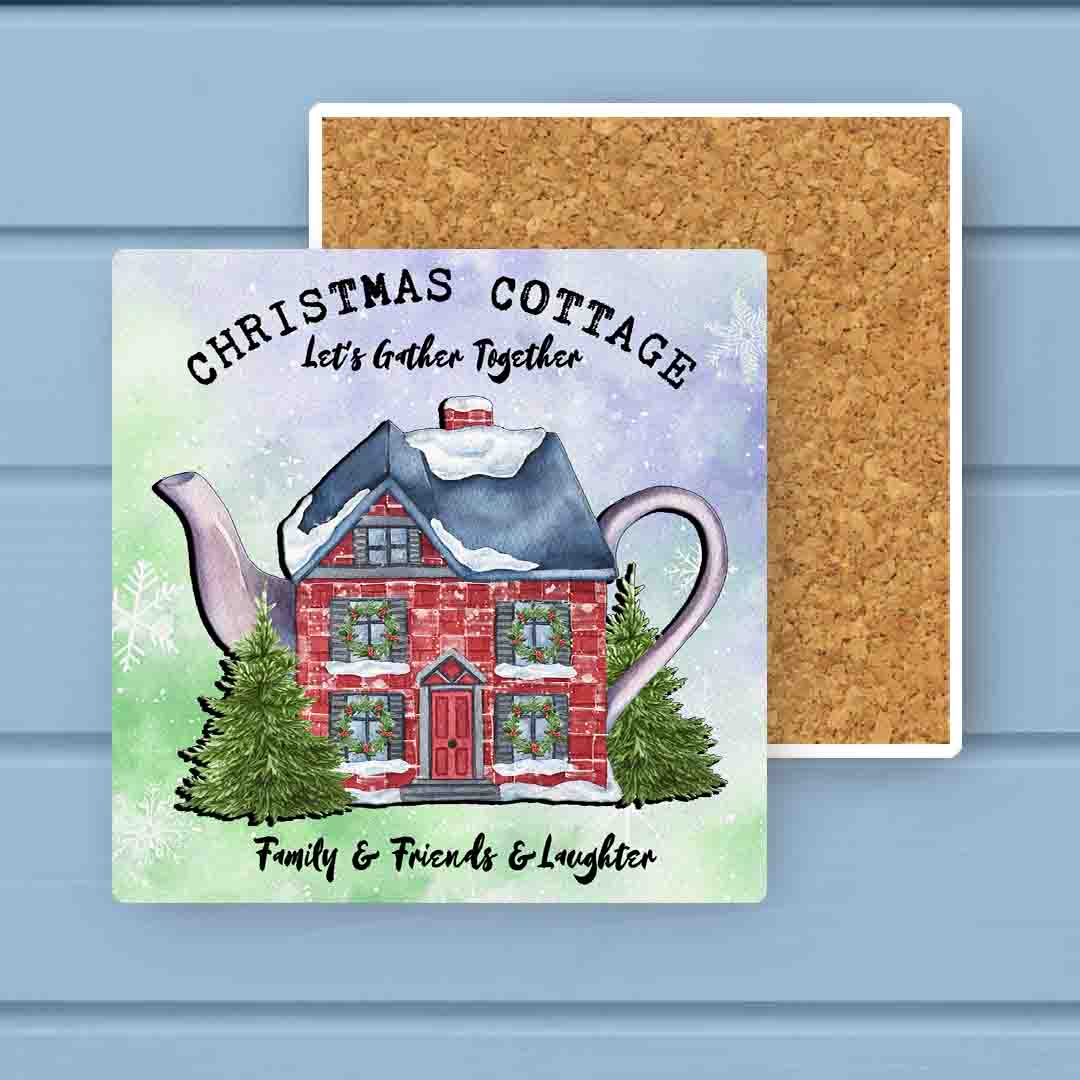 Christmas Teapot Brickhouse Cottage Absorbant Stone Coaster