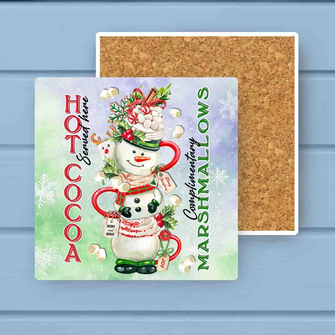 Snowman Hot Cocoa & Marshmallows Winter Stone Coaster