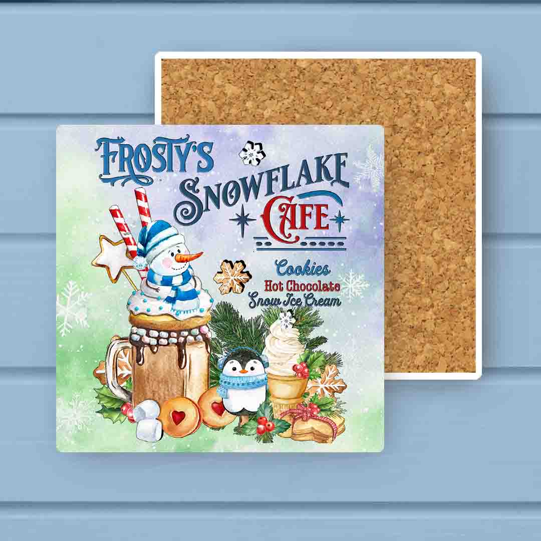 Frosty's Snowflake Café Winter Christmas Stone Coaster
